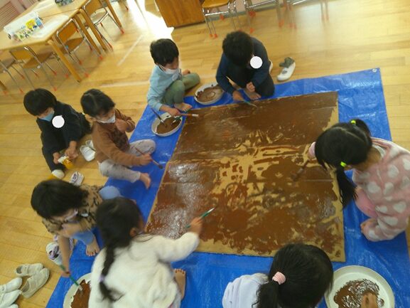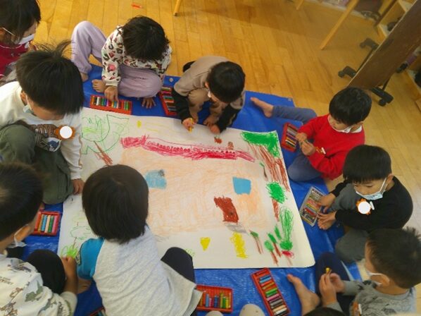 <発表会の絵> みんなでこうがいいんじゃないと意見を出し合いながら協力して描きました。