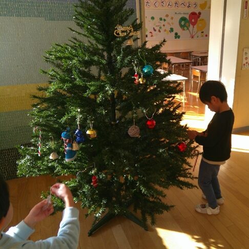 <クリスマス飾り> 好きな飾りを選んでそっとつけています。
