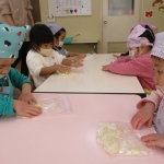 担任から優しくトントンしてもらい、みんなぐっすり眠っていますね。最初の頃はちょっとした物音ですぐに目が覚めていましたが、今ではぐっすり眠っています。どんな夢を見ているのかな?みんな可愛い寝顔ですね!