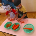 給食もまだまだ手掴み食べも見られますが、スプーンを持って食べています!