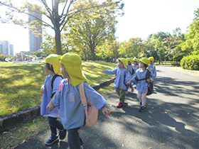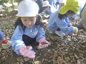 まだまだ日中は暑い日もありますが、秋を探しにお散歩に出掛けました。年少組、年中組はアイランドシティ中央公園、年長組はせせらぎ公園へ行きました。年長組は公園でお弁当も食べてきました。どんぐりやまつぼっくり、落ち葉など、たくさん秋を見つけることができました。