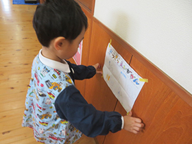 勤労感謝の日に寄せて、どんな方々にお世話になっているかをクラスごとに話し合い、お礼のプレゼントを作りました。直接渡しに行けるところには子どもたちが届けに行き、「ありがとう」をお伝えしました。