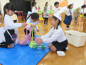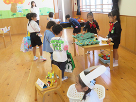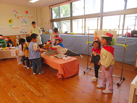 みんなが待ちに待った本番の日、「いらっしゃいませー!」の元気な声と共に開店しました。お店屋さんもお客さんもとても楽しんでいました。