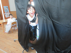 薬剤戦士オーガマンと一緒に手洗いや歯磨きの仕方や大切さについて学びました。かっこいいヒーローに会うことができて嬉しそうでした。