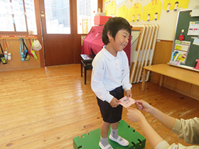 お店屋さんを頑張った次の日はお給料日です。一人一人大切に受け取り、嬉しそうにしていました。
