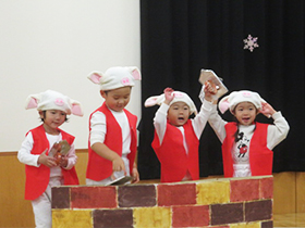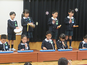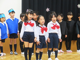 楽しみにしていた本番の日、たくさんのお客さんの前で歌と合奏、劇を発表しました。緊張しながらも、それぞれが練習の成果を発揮することができ、達成感を味わうことができたようです。
